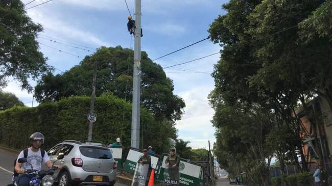 Los hermanos Angulo informaron que los técnicos de la empresa de telefonía móvil celular fueron acompañados de un grupo de policías del Escuadrón Antidisturbios de la Policía Nacional, Esmad.