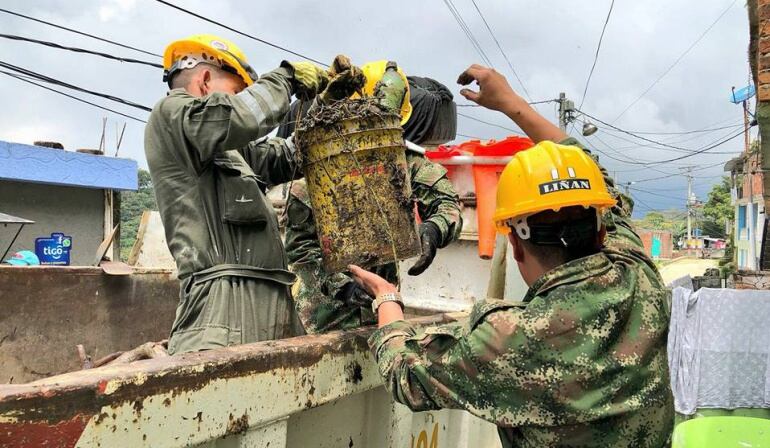El personal ha ayudado a remover el material de lodo y piedra, que causó el colapso de las residencias, así como pérdidas de muebles y enseres para las familias, así lo explicó el Cabo Primero Alexander Tarazona, asesor de gestión de riesgo de esa unidad militar.