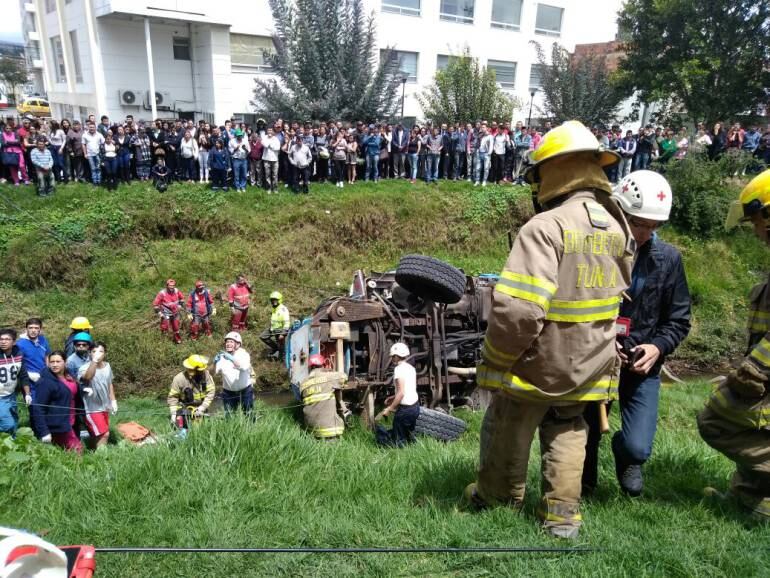 Los heridos fueron trasladados a centros asistenciales, mientras que los organismos de socorro, en cabeza del cuerpo de Bomberos de Tunja, intentan rescatar a la mujer que fue arrollada y que quedó atrapada.