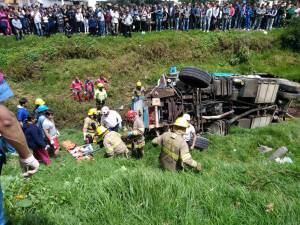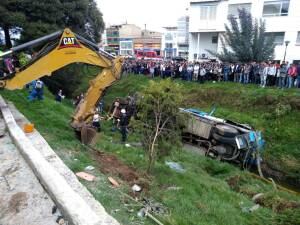 Un trágico resultado dejó el accidente de tránsito provocado al medio día de este lunes, por uno de los vehículos de la empresa Veolia Aguas de Tunja, el cual se precipitó sobre el río La Vega, arrollando a una mujer que transitaba sobre la transversal 7 a la altura del barrio Cristales. En el evento también resultaron heridos dos peatones más, y uno de los trabajadores de la empresa mencionada.