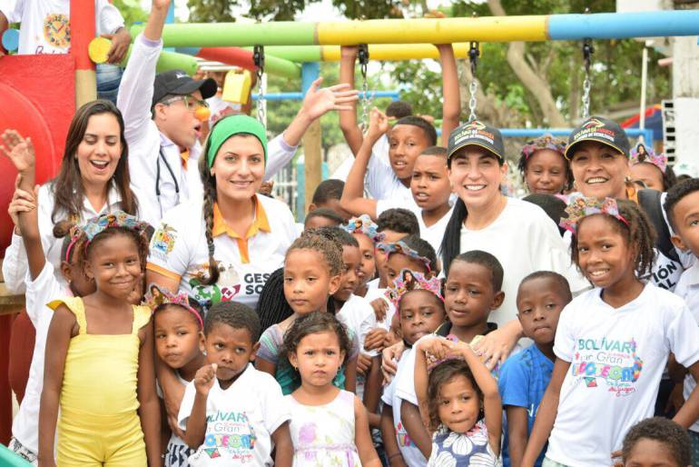 En el marco de la campaña ‘Dona un parque, recibe sonrisas’ liderada por la Oficina de Gestión Social del ‘Bolívar Sí Avanza’ y que consiste en una alianza público-privada para donar parques infantiles en diferentes lugares del departamento, la primera dama y gestora social, Liliana Majana, estuvieron en el barrio San Francisco de Cartagena, realizando entrega de un parque infantil a la comunidad del sector, que recibió el nombre del ‘Parque de los sueños’. En esta ocasión, se vincularon a esta iniciativa las empresas ‘Gigante del Hogar’ y ‘Servicios y obras G&G’ beneficiando a más de 500 niños y niñas de la zona.