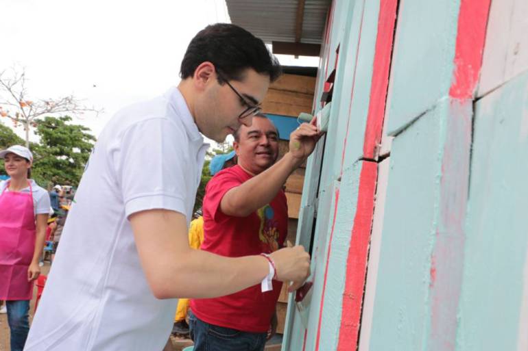 La primera jornada, permitió embellecer el entorno de unas 200 viviendas, a través de un ejercicio colaborativo que facilitó la cohesión social y el trabajo en equipo. Esto gracias al apoyo de 40 jóvenes de la Escuela Taller de Cartagena de Indias, como un medio para promover el liderazgo juvenil y desarrollar sus capacidades artísticas. De igual forma, se realizó siembra de árboles, creación de huertas urbanas e instalación de mobiliario y juegos con material reciclado.
