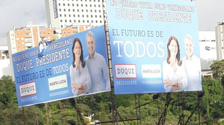 Aluden a la campaña de Ivan Duque, candidato presidencial. Fueron calificadas de xenófobas y ordenaron su retiro.