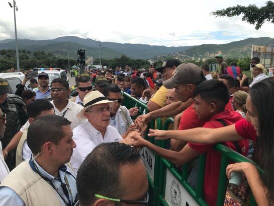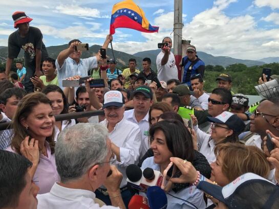 Hasta el puente del lado colombiano llegaron los expresidentes Álvaro Uribe Vélez y Andrés Pastrana acompañados de la formula a la vicepresidencia Martha Lucia Ramírez, y de cientos de seguidores del Centro Democrático que acompañan la candidatura de Iván Duque.