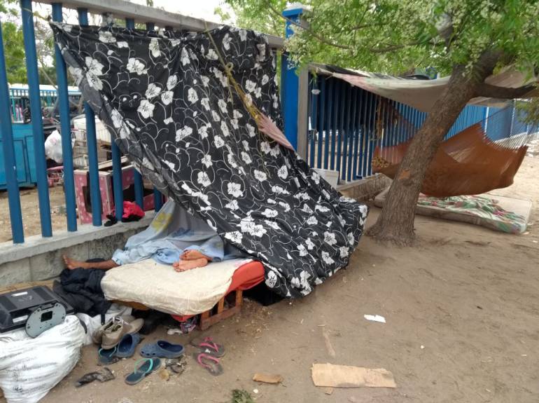 Como ella, ya son al menos 400 las personas que pasan las noches a las afueras de la terminal terrestre viviendo muchos de la caridad de los residentes del sector.