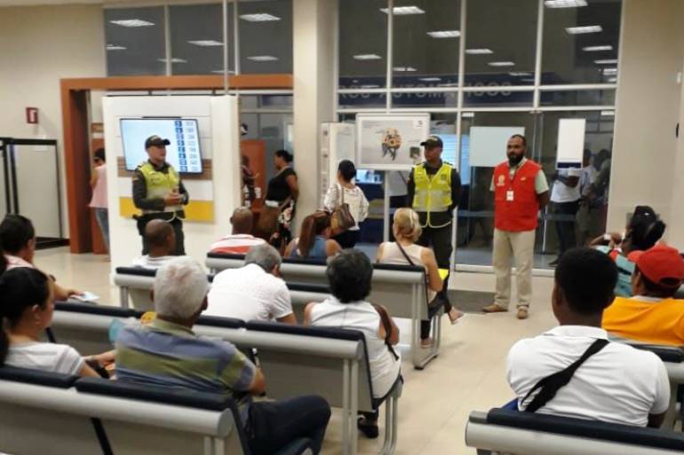 Estas actividades también incluyen charlas de sensibilización dirigidas a los usuarios de entidades financieras, desplegadas por funcionarios de la Policía Metropolitana de Cartagena, en conjunto con la Secretaria del Interior y Convivencia Ciudadana, brindando tips de seguridad para que no sean afectados por acciones delictivas: