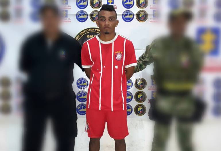 Miembros del Gaula Militar Caribe capturaron al joven después de que terminara de jugar un partido de fútbol al ser acusado de pertenecer a la banda delincuencial a la que apoyaría con su financiamiento con el cobro de extorsiones a comerciantes, según información preliminar.