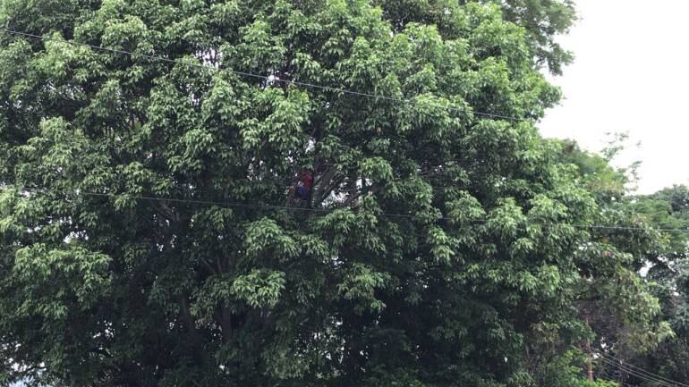 Esta odisea la completó un estudiante de Derecho y de Trabajo Social de la UIS, que se subió a lo más alto de un frondoso árbol en la Escuela Normal.