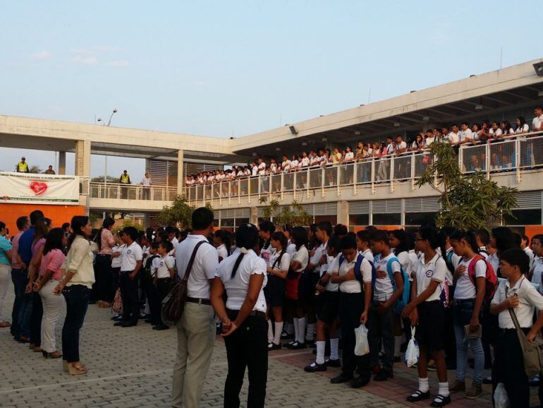 Debajo de los árboles reciben sus clases 1.200 estudiantes desde el pasado lunes del colegio Olga Emiliani, ubicado en la Ciudadela 20 Julio, al sur de Barranquilla, a raíz de la falta de energía por un daño en las cañuelas.