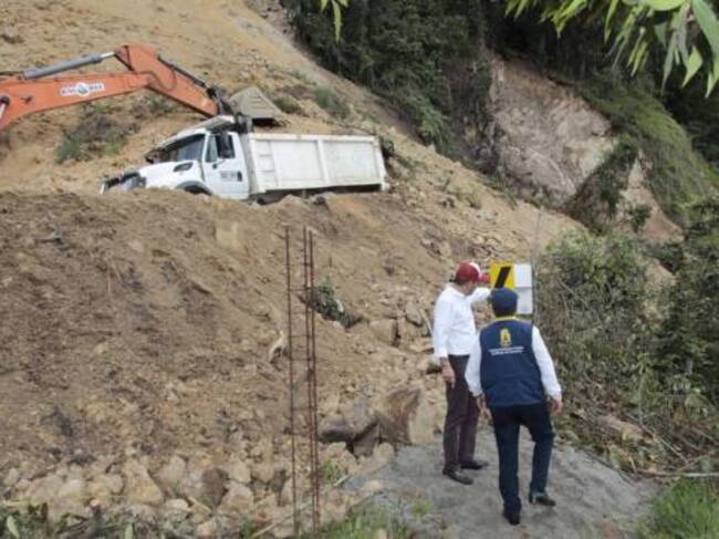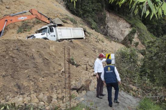 El gobernador Didier Tavera fue hasta el sitio dopnde cayó el derrumbe, en la zona del Tope.