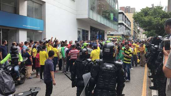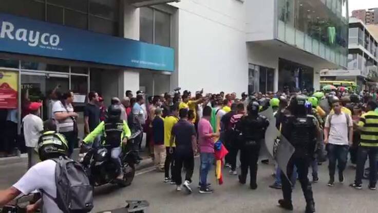 Los hechos se generaron cuando algunos de los manifestantes lanzaron papas bomba. Entonces, vino la intervención del Escuadrón Antidisturbios de la Policía Metropolitana de Bucaramanga, ESMAD.