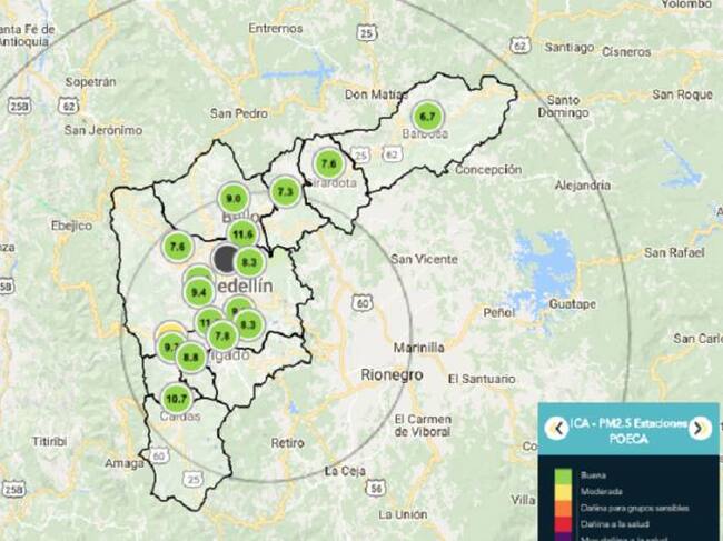 Así está la calidad del aire en el Valle de Aburrá