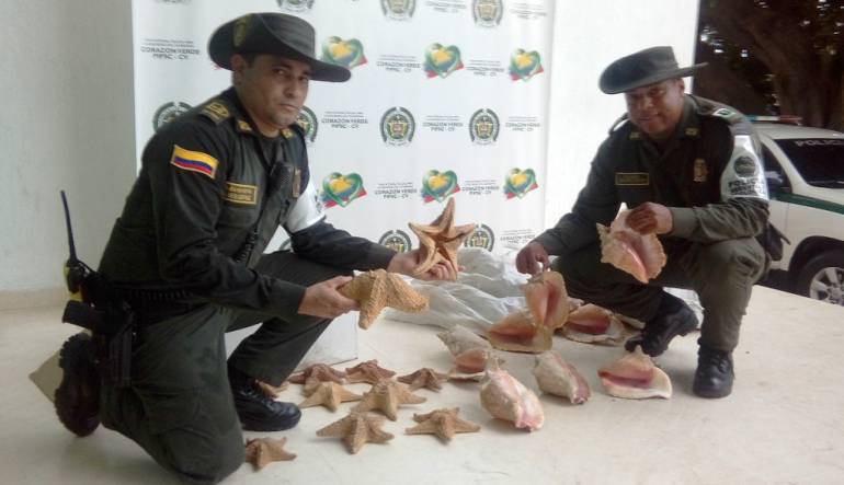 Decomisan cinco costales de caracol y estrellas de mar en Cartagena