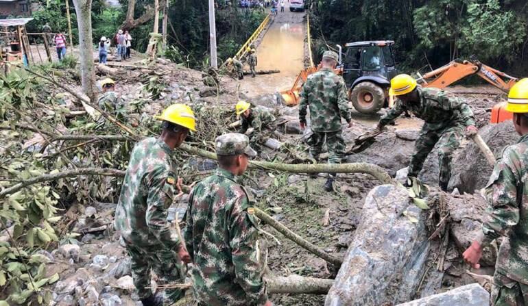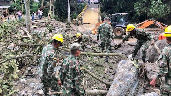 Ingenieros del Batallón Baraya de la Sexta Brigada del Ejército, brindan ayuda para atender la emergencia por el invierno en el Cañón del Combeima zona rural de la ciudad de Ibagué que ha sido bastante afectada por el invierno.