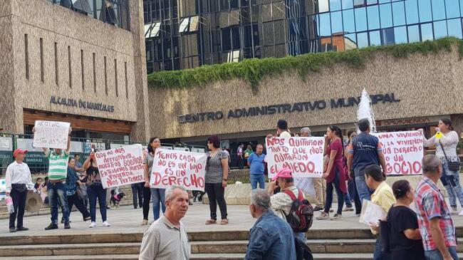 El martes en la tarde cerca de 70 personas realizaron un plantón en la Alcaldía de Manizales, donde nuevamente manifestaron su desacuerdo y pidieron que les entreguen sus viviendas, ya que en algunos casos hace más de 6 años les expropiaron sus antiguas viviendas con el fin de renovarlas, acto que sí se hizo, pero el no haber entregado las nuevas residencias ha causado un detrimento económico en cada familia afectada.
