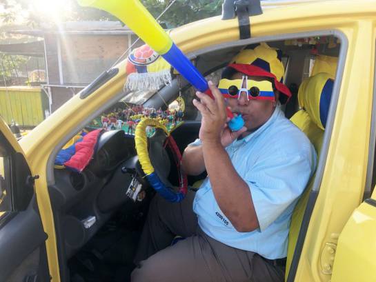 Este hombre que es uno de los más fieles seguidores de la Selección Colombia, convirtió su taxi en un estadio, aprovechando la fiebre del Mundial de Rusia 2018, donde la expectativa con el combinado tricolor está a flor de piel.