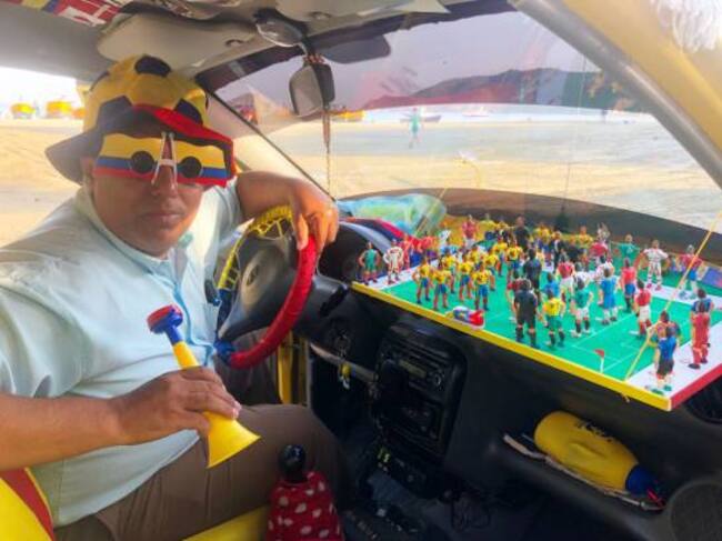 Se trata de un acérrimo aficionado a la Selección Colombia que convirtió su taxi en un estadio de fútbol.