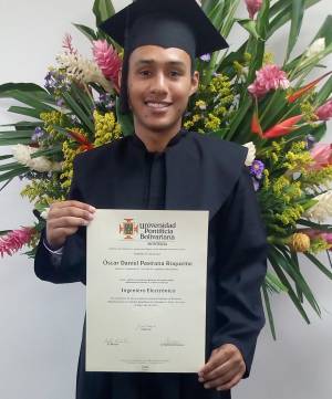 Óscar David Pastrana Roqueme, del municipio de Montelíbano, Estudió Ingeniería Electrónica en la Universidad Pontificia Bolivariana de Montería.