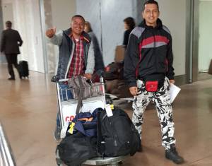 Dos de los artesanos que viajaron a Europa son Jorge Cáceres y Oscar León. Se trata de personas muy humildes que estuvieron trabajando con Fornes en un taller del barrio Girardot en la elaboración de las fallas que fueron presentadas durante el festival de la cultura durante los festejos locales en la capital de Santander el año pasado.