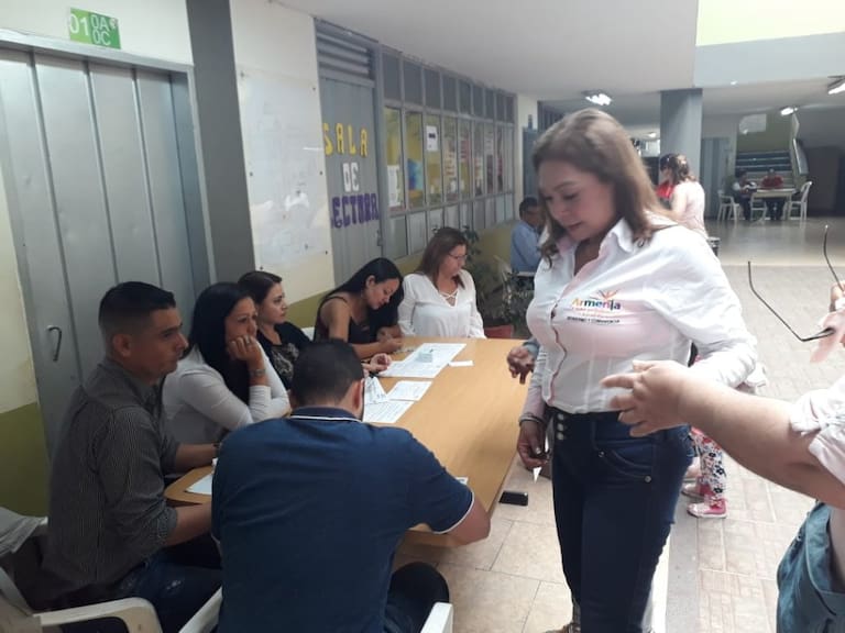 La alcaldesa encargada de Armenia, Gloria García voto en el colegio Gustavo Matamoros D’Costa