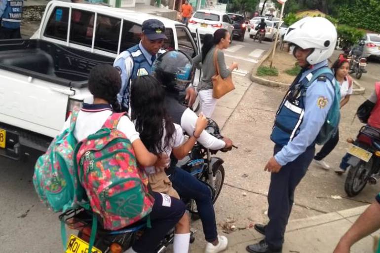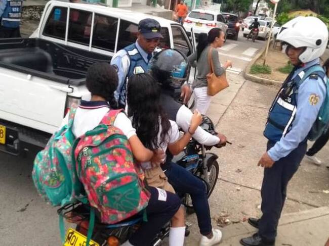 10 motociclistas son sancionados a diario en Cartagena por llevar niños