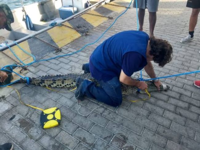 “Logramos identificar el lugar en donde estaba, llamamos la lancha de CORALINA y dimos con la captura de un pequeño cocodrilo, mide un poco más de casi dos metros, es un animal joven, esta es una especie protegida a nivel de Colombia, y a nivel de varios países del gran Caribe, es una especie que está distribuida por todo Centro América en Colombia, en la parte continental y lo tienen países como Cuba”, afirmó Nacor Bolaños.