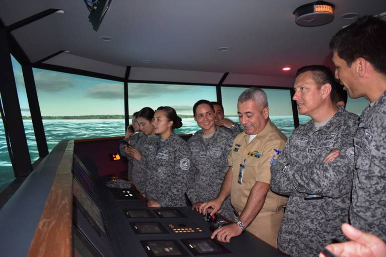 De igual forma, hubo espacio para visitar el Centro de Investigación, Desarrollo e Innovación de Actividades Marítimas, y apreciar las capacidades del simulador de Puente Full Mission, empleado para investigación y la capacitación de los Cadetes y Oficiales de la Armada Nacional, y la gente de mar.