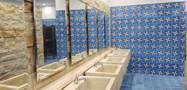 El centro de convenciones presenta detalles muy particulares; asemeja el partenón griego. El piso es de mármol, las paredes están forradas con tierra de Santander, elaboradas a mano con cascarilla de arroz y barro. "Lo que nuestros aborígenes usaron para hacer sus construcciones", explicó el arquitecto del consorcio constructor.
