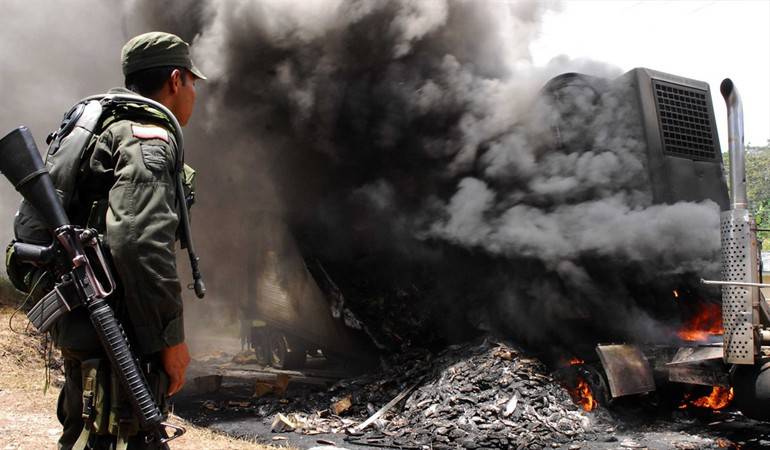 De acuerdo con el testimonio del conductor del tractocamión, identificado como Luis Becerra, dos hombres que adujeron pertenecer a la guerrilla del ELN, y que portaban Armas de fuego cortas, lo obligaron a parar y bajar del vehículo, y posteriormente le prendieron fuego sin mediar más palabras.
