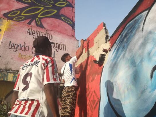 En cabeza de Jorge Noguera, un líder comunal del sector, los jóvenes realizaron una jornada de limpieza y donde hicieron un grafitti en honor al Junior, equipo del que son hinchas y alientan desde la barra de Los Kuervos.