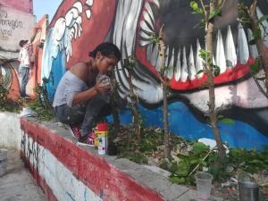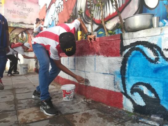 Jóvenes pintan en el sector escogido.