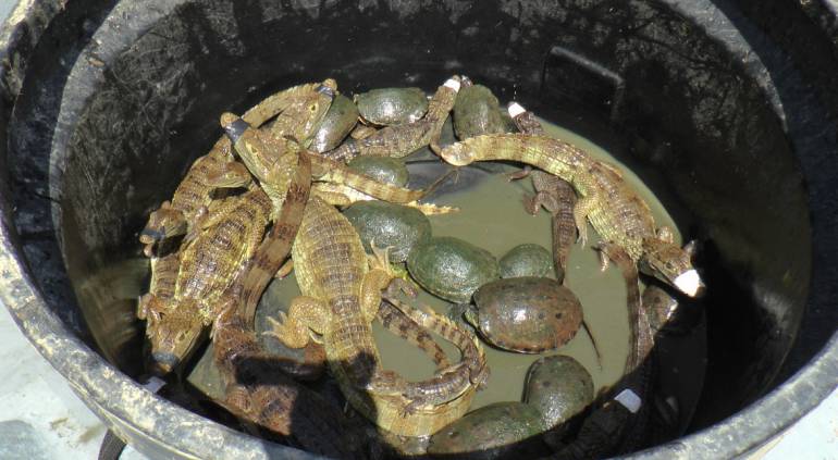 Entre las especies recuperadas se encuentran 13 hicoteas, 19 babillas, 2 chigüiros y un loro cabeza amarilla.