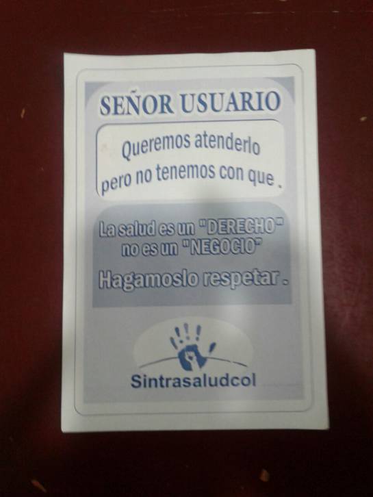 “Protestamos por algo justo, queremos atender a nuestros pacientes, pero no tenemos cómo. La verdad es una situación que poco a poco se vuelve insostenible. No tenemos ni siquiera material suficiente para suturas, no hay contrato Farmaquirúrgico establecido, no tenemos ni acetaminofén, y los sueros están próximos a acabarse”, dijo en Caracol Radio uno de los trabajadores del sindicato.
