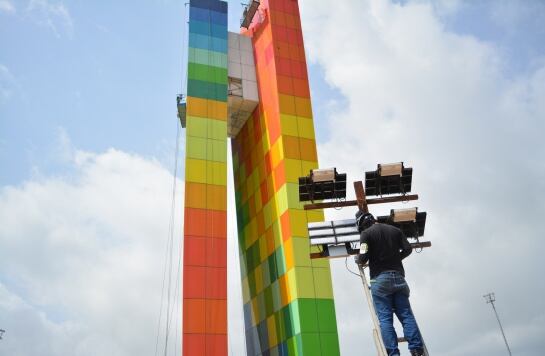 Se trata de un monumento de 47 metros de altura, constituido en dos columnas por 2.000 metros cuadrados de vidrios laminados en colores rojo, amarillo, verde, azul y blanco: La estructura demandó 80 toneladas de estructuras metálicas, 10 toneladas de aluminio y 510 metros cúbicos de concreto.