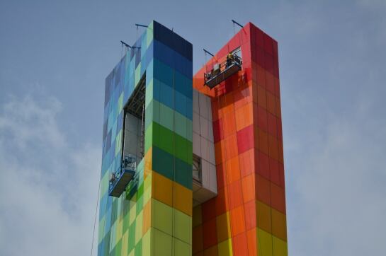 “Esta es una estructura que expresa el dinamismo de Barranquilla y en lo más alto, cuando alcanzan su máximo esplendor, una ventana los atraviesa y esa es la que consideramos ‘la ventana al mundo’”, dijo la arquitecta Escorcia.