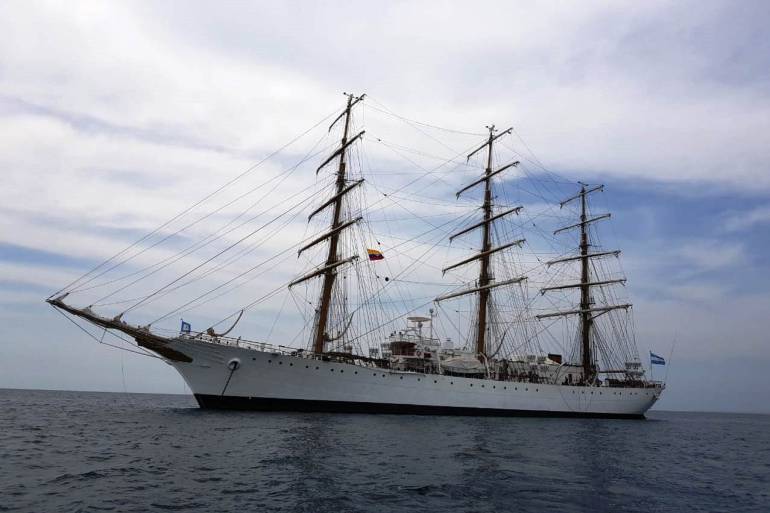 En el marco de la regata “Velas Latinoamérica 2018” arribó a aguas colombianas la Fragata ARA “Libertad”