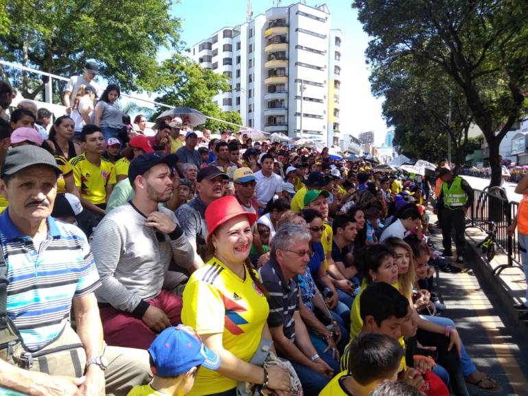Se colocaron varias tarimas a lo largo de la vía, las cuales estuvieron totalmente copadas por familias enteras que se sienten orgullosas de haber nacido en Colombia.