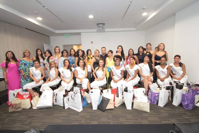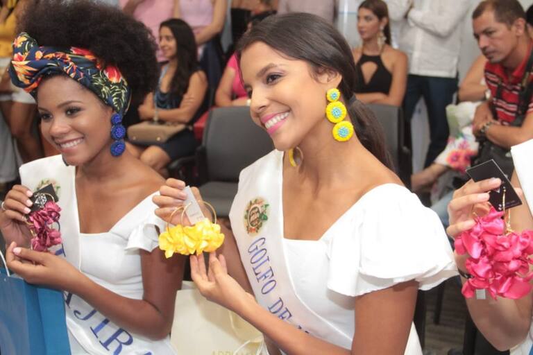 Las candidatas posaron ante los medios de comunicación mientras recibían los vestuarios y accesorios que portaran en los eventos.