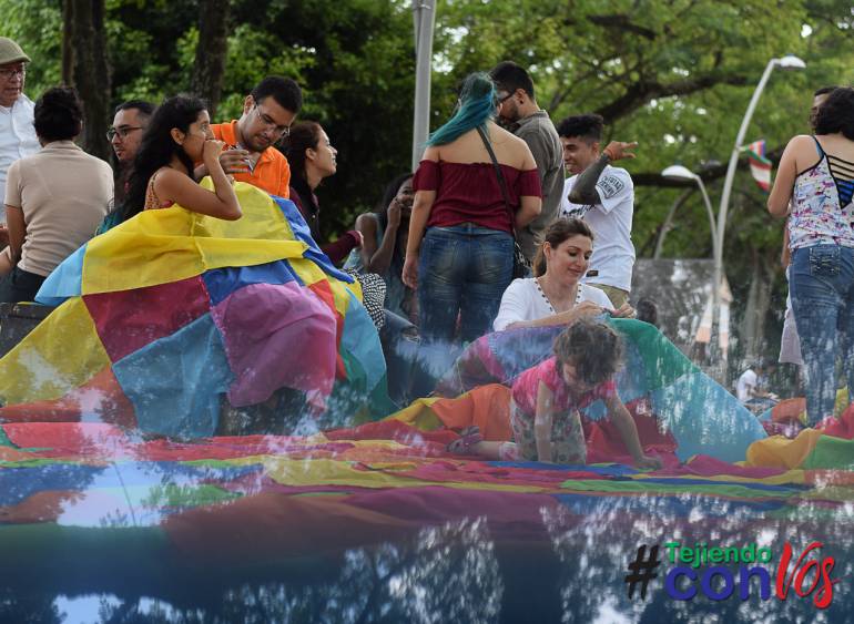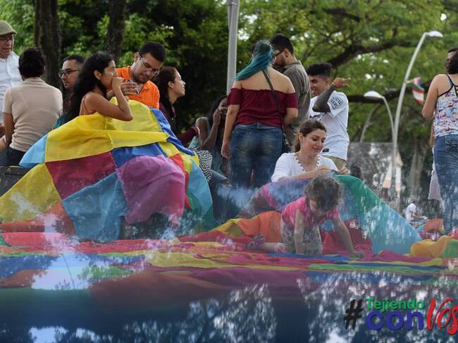 En varios lugares de Cali la campaña #TejiendoConVos, junto con líderes, lideresas y habitantes, juntaron retazos con agujas e hilo para lograr que entre todos se teja un abrigo de paz, reconciliación y convivencia ciudadana.