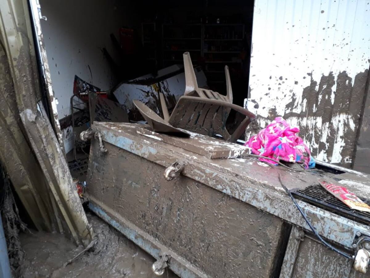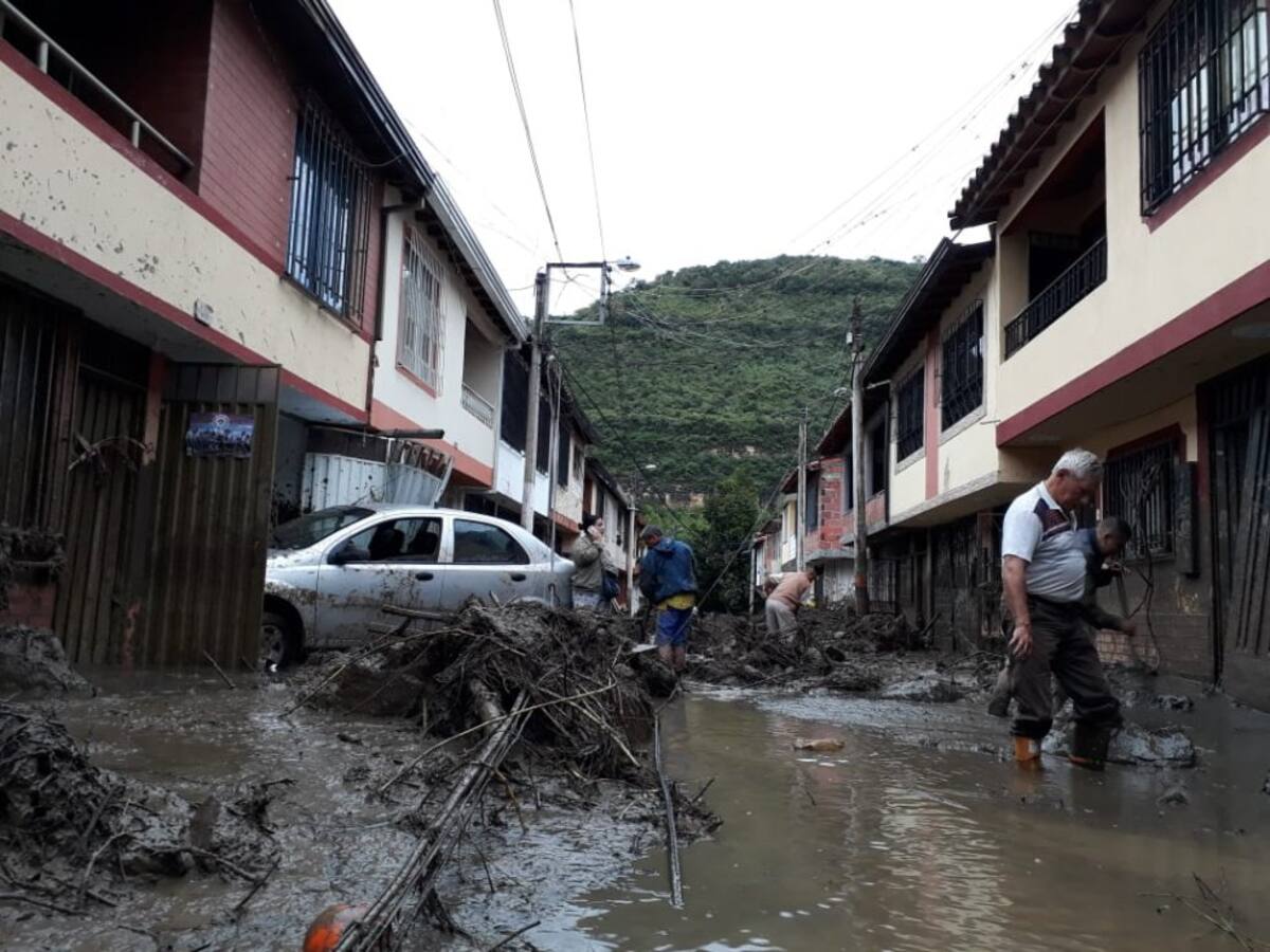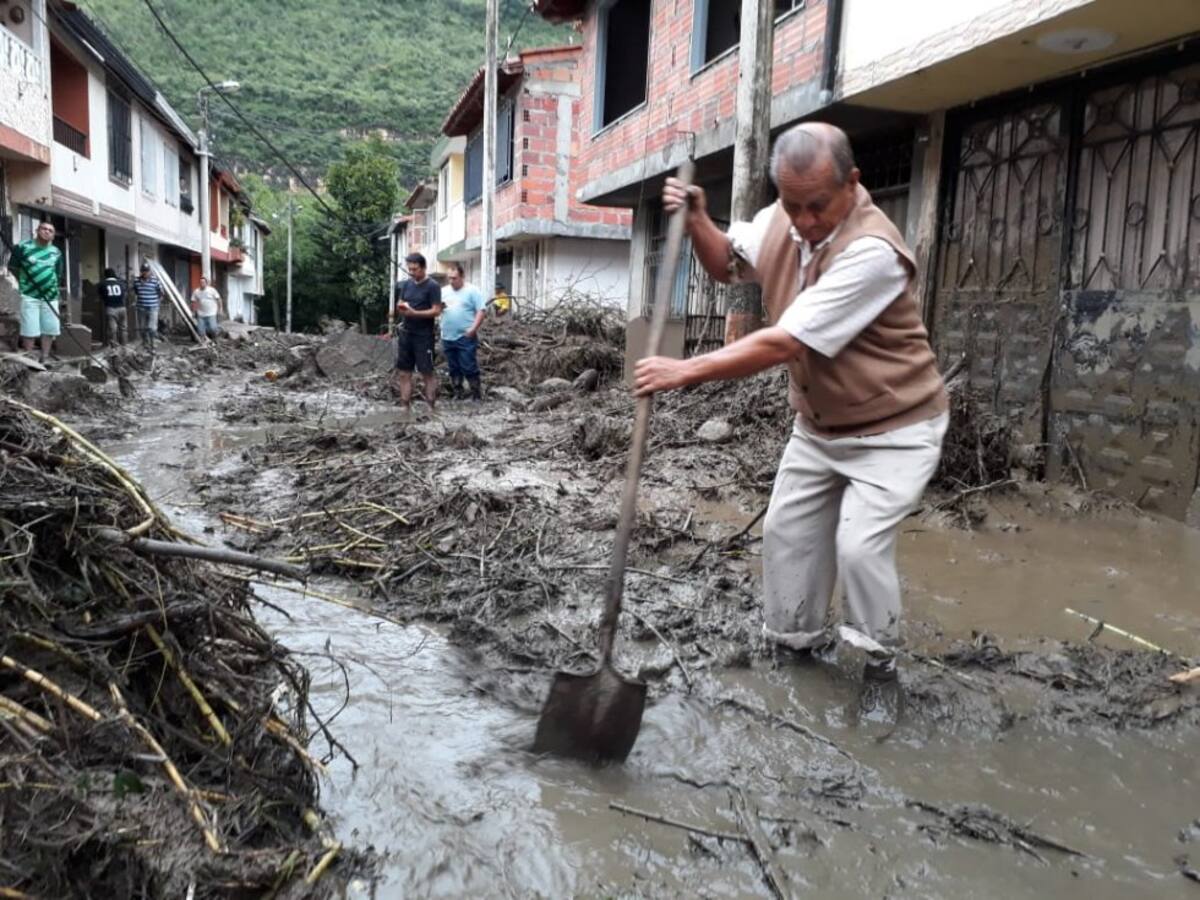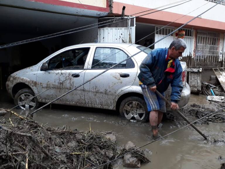 Los vecinos intentan remover el lodo de las calles del municipio.