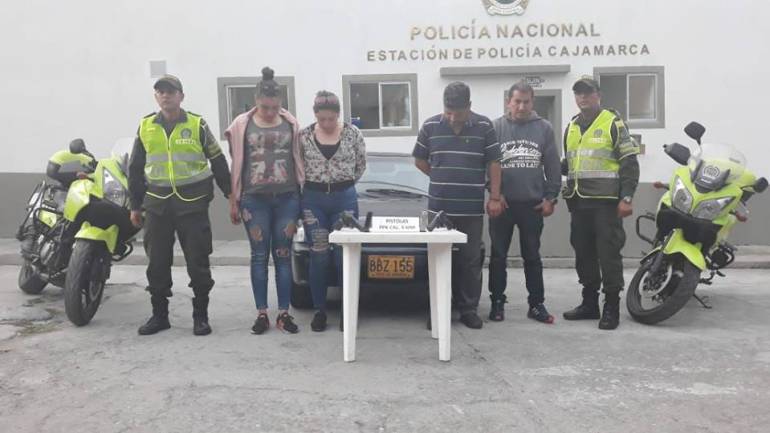 Entre los aprehendidos se encuentran Lorena Sofía Cruz, Edna Alejandra Sánchez, Julio Cesar Rodríguez y Hernández López quienes quedaron a disposición de la Fiscalía 43 local de Cajamarca por el delito de tráfico, fabricación y porte ilegal de armas de fuego y municiones.