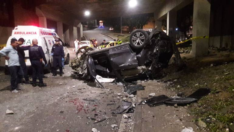 El director de tránsito de Bucaramanga, Germán Torres, indicó que el accidente se presentó sobre las 2:00 de la mañana en el puente de Conucos cuando el conductor de la camioneta Honda que se movilizaba desde la carrera 33 hacia el sur de la ciudad, perdió el control del vehículo, impactó uno de los muros del puente y cayó a la parte baja.