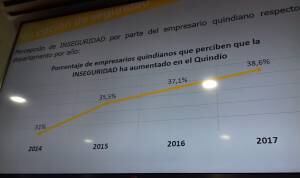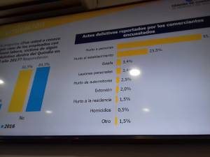 Según el informe el 36% de los comerciantes encuestados perciben que la inseguridad se ha aumentado en el departamento, donde el hurto a personas con 61% y el hurto a comercio con 23% son los actos delictivos más reportados