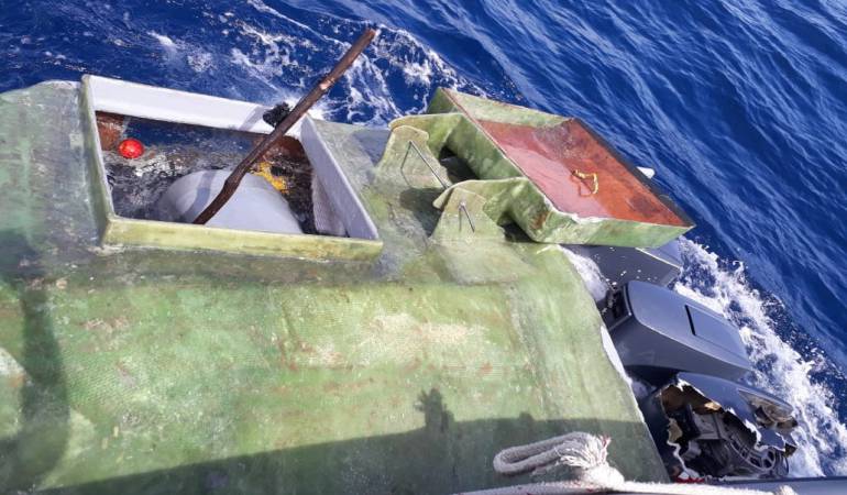 De acuerdo a información de inteligencia de las fuerzas militares, con las participación del avión militar Cessna Citation SR-560 Tracker se logró localizar está embarcación color gris con verde que estaba a la deriva en altamar, luego de que los tres motores presentaran fallas mecánicas en su trayecto hacia Centroamérica
