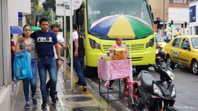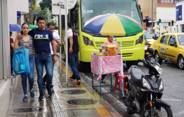 Antes de que se aplique el Plan Maestro de Espacio Público en Bucaramanga, un documento elaborado por la Universidad Pontificia Bolivariana, UPB, hay más evidencias de la invasión de avenidas como la calle 36, en el centro de la ciudad, en especial en horas de la tarde.