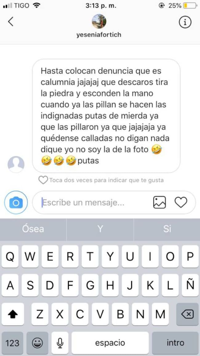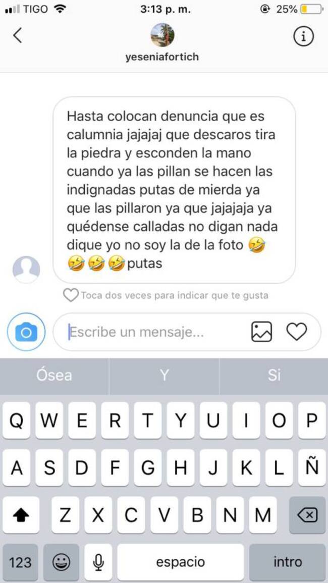 “Yo también he sido víctima de insultos por cosas que no son ciertas”, dice Yesenia Fortich. “Me perjudicó el video, robaron mis fotos de redes sociales, por maldad o chiste, y se hizo viral. Estoy recibiendo insultos, acusaciones de que soy una prepago, peticiones de servicios, preguntas de cuánto cobro”, sostiene.