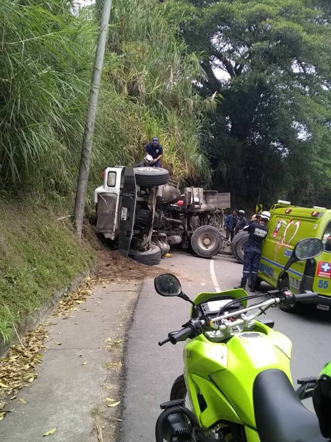 Foto 3 de 5Volcamiento de camión en la vía Armenia Montenegro, un herido