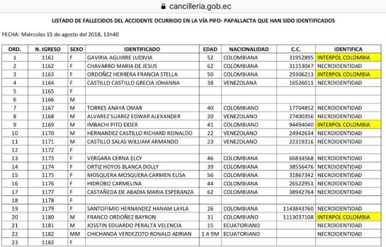 En Cali , los familiares de las personas fallecidas esperan que alguna autoridad les ayude en la repatriación de sus cuerpos.Esta mañana parten al Ecuador numerosos familiares, quieren llegar a ese país con el propósito de colaborar con las autoridades de salud y estar pendientes de sus allegados.