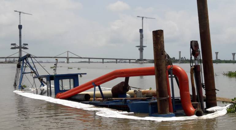 “Los controles continuarán hasta que saquen la draga. Con un remolcador se espera extraer la máquina en las próximas horas y con barreras estamos controlando la presencia del hidrocarburo cerca de la bocatoma del acueducto”, expresó Moreno.