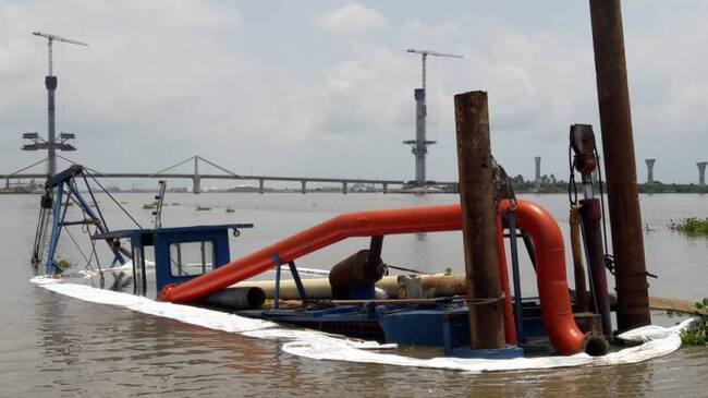 Fortalecen barreras en la draga hundida para evitar nueva contaminación